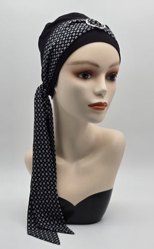 Bonnet modèle Joséphine - Noir et fleurs blanches